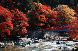 | 真っ赤な橋に真っ赤なもみじ・・・ | |