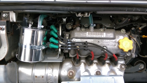 なんとか取り付け完了!! 塗料缶が大きすぎた・・・orz しかも、ブローバイ漏れとるし・・・ |