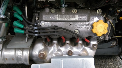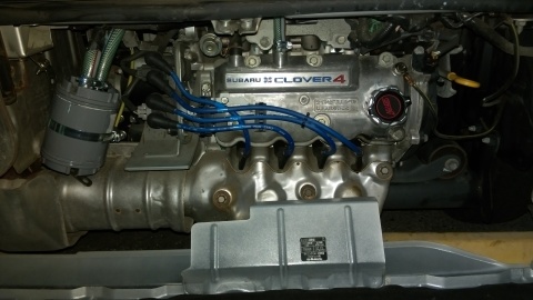 さて、この殺風景なエンジンを鮮やかにしましょうwww ヘッドカバー外すの面倒やし、、、、赤帽サンバーでもないんで 素地です!素地! |