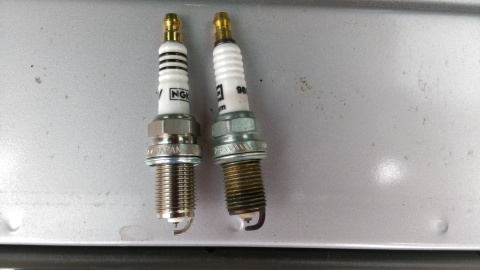 さて、プラグの状態は・・・ 4つ共平等に焼けているのでイイ感じです♪ まだ使えそうですが、容赦なく交換www |